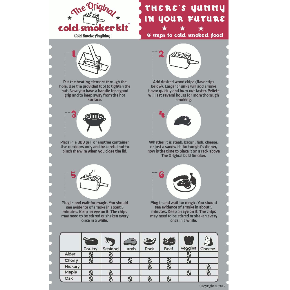 The kit contains everything you need to cold smoke tonight's dinner or that jerky you are stocking up for the next few weeks. Plug it in, put it in your grill or another enclosed container*, give it a few minutes and see The Original Cold Smoker Kit infuse smoke into whatever you are cooking. Unlike the hot smoking approach, it won't overcook your food. The kit will most certainly impress your friends with that cold smoked meal you make for your dinner party and will serve as a perfect unique gift to present to any foodie or a novice cook on Father's Day, Mother's Day, birthday, Christmas or any other occasion.